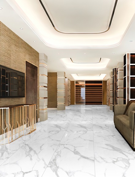 Glazed vitrified tiles (GVT) are characterized by their glazed surface, providing a diverse range of design options, artwork, and surface textures such as wood grain, bamboo, slate, or stone. Polished Glazed Vitrified Tiles (PGVT) undergo an extra firing process that involves the application of a layer of liquid glass onto GVT.